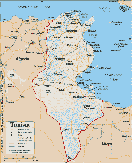 La Tunisia ufficialmente Repubblica Tunisina è uno Stato del Nordafrica bagnato dal mar Mediterraneo e confinante con l’Algeria ad ovest e la Libia a sud e a est. Si ritiene che il suo nome, Tūnus, abbia origine dalla lingua berbera, con il significato di promontorio, o, più probabilmente, “luogo in cui passare la notte”. Il francese è molto diffuso e utilizzato nella pubblica amministrazione, nell’istruzione superiore e nel commercio.